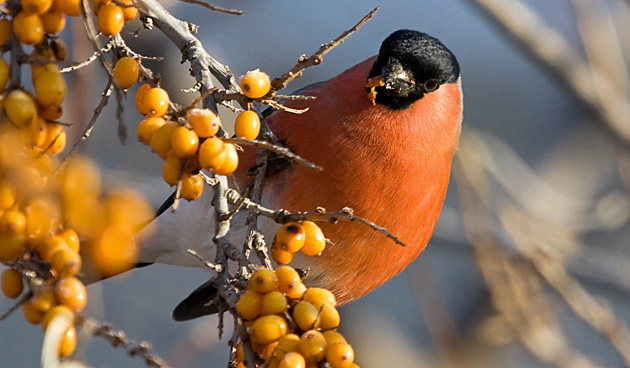 duindoorn 2De duindoorn (Hippophae rhamnoides) is een tweehuizige struik en komt in Nederland van nature vooral voor in open, kalkrijke duinen. De bessen zijn zuur en rijk aan vitamine C, vitamine E carotenoïden, flavonoïden, plantensterolen, lignanen en mineralen. In de winter kunnen de bessen gaan gisten, hierdoor kunnen vogels als de spreeuw, lijster en kramsvogel dronken worden.